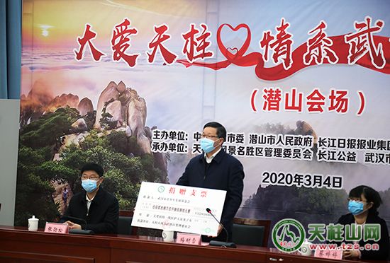 3月4日上午10時(shí),潛山市、武漢市長江日?qǐng)?bào)長江公益、青少年發(fā)展基金會(huì)舉行“大愛天柱·情系武漢”云捐贈(zèng)儀式。天柱山景區(qū)5285880元門票義售善款全部捐贈(zèng)給長江日?qǐng)?bào)長江公益、青少年發(fā)展基金會(huì),用于關(guān)愛武漢戰(zhàn)“疫”醫(yī)護(hù)人員及子女。