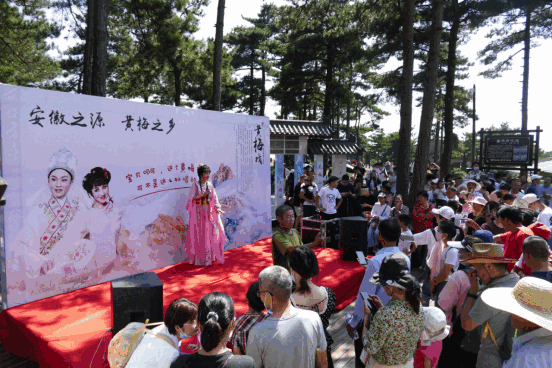 國(guó)慶期間,正值第九屆黃梅戲藝術(shù)節(jié)在安慶舉行,天柱山景區(qū)在游客中心廣場(chǎng)和景區(qū)內(nèi)開展黃梅戲演出,讓游客在游玩之余,還能欣賞到精彩的黃梅戲表演。