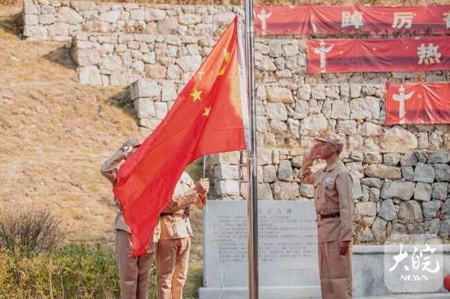 升旗儀式上,抗美援朝老兵面對(duì)“保家衛(wèi)國 中國人民志愿軍抗美援朝72周年”大型畫板心情激動(dòng),現(xiàn)場(chǎng)重溫了他們?cè)趹?zhàn)場(chǎng)上殊死戰(zhàn)斗的不凡經(jīng)歷和感人故事。